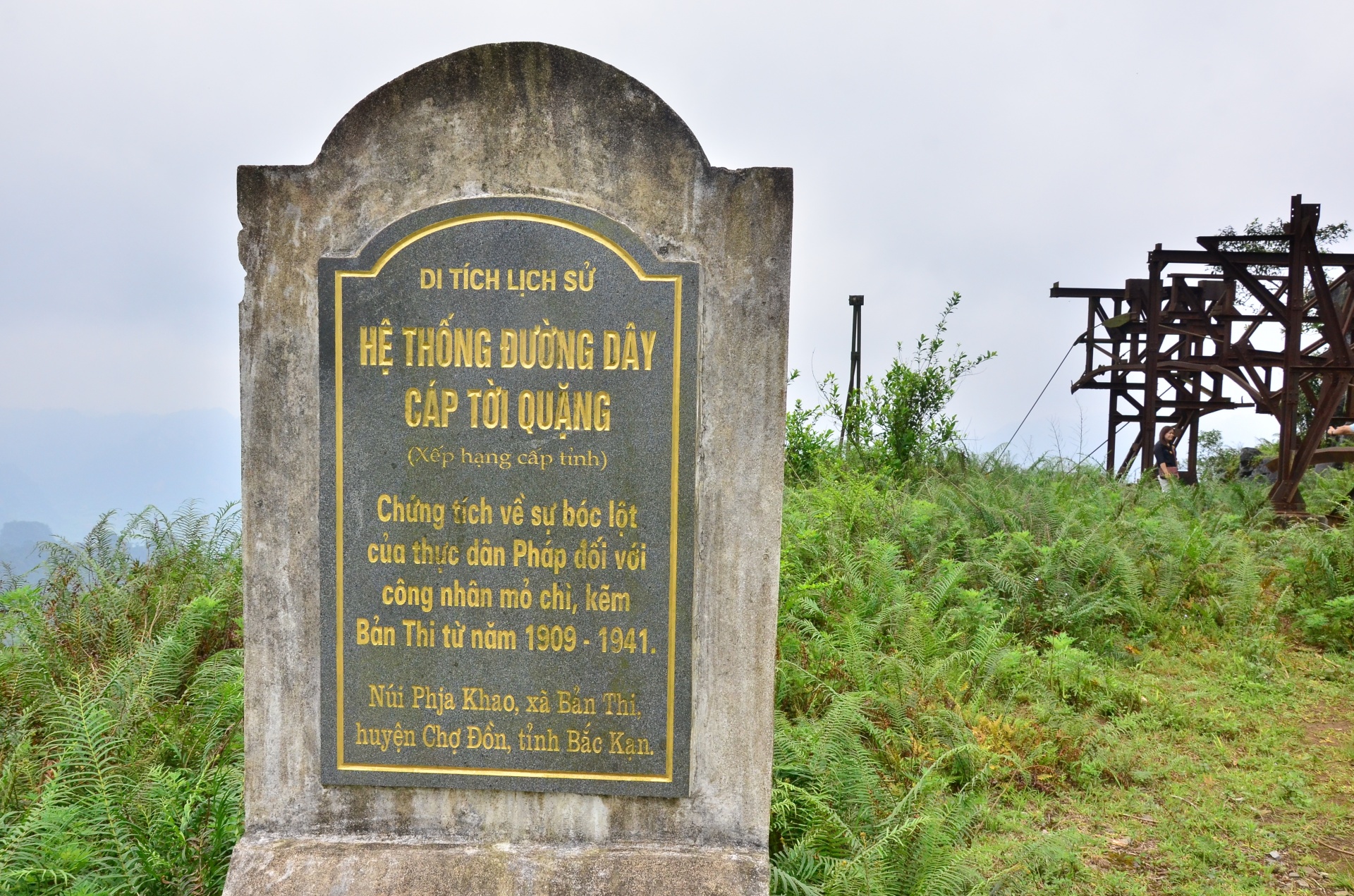 Hệ thống đường dây cáp tời quặng, chứng tích về sự bóc lột của thực dân Pháp đối với công nhân mỏ, chì kẽm Bản Thi từ năm 1909-1941.